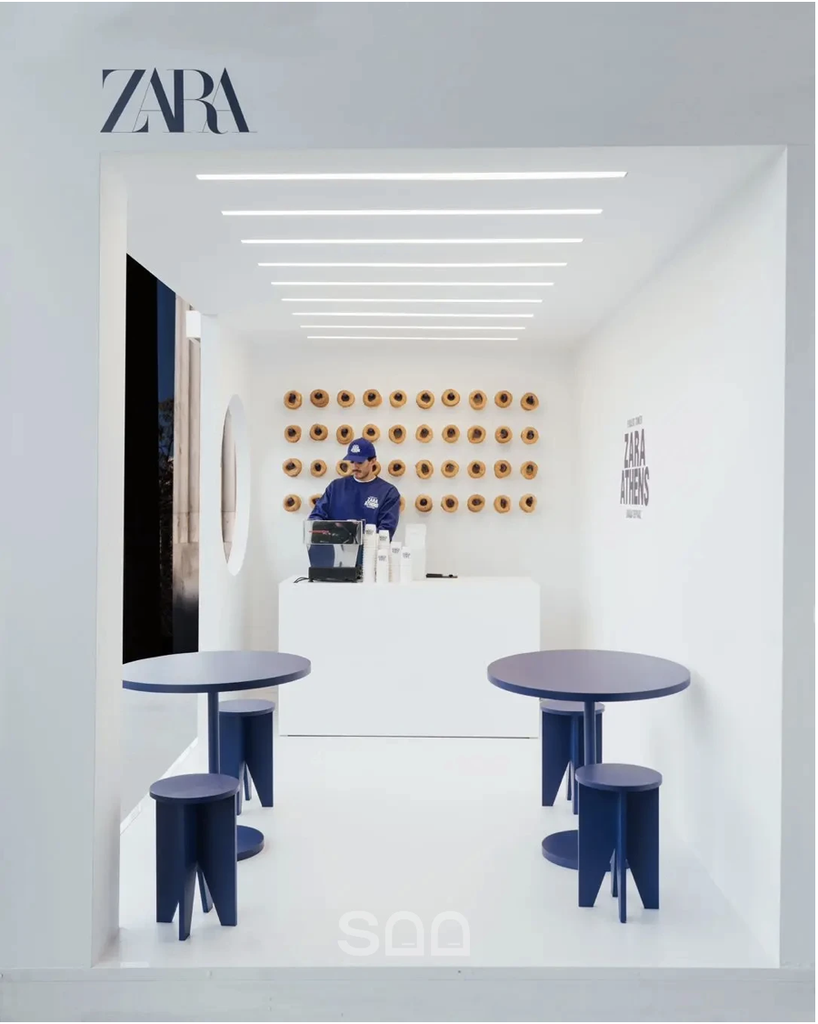 Zara has expanded its presence to Athens with a new store in the iconic Tower of Piraeus, Greece’s second tallest building. To celebrate the opening, Zara collaborated with Madrid-based Wozere Studio to create an extraordinary pop-up coffee station.